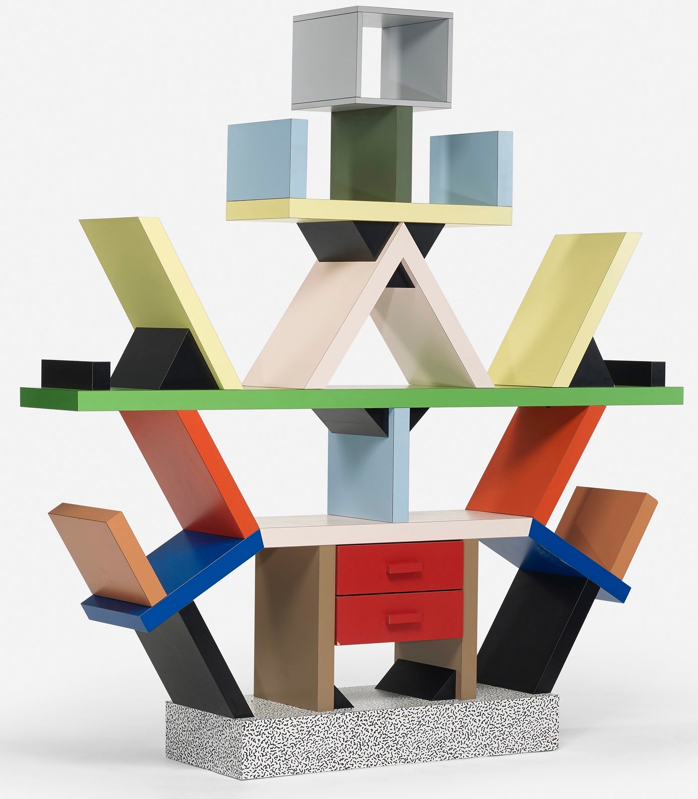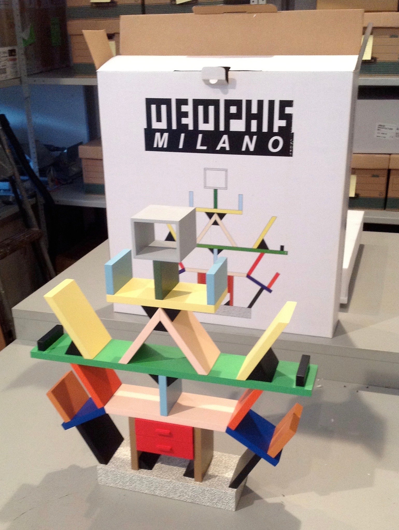 Designed by Ettore Sottsass himself after his iconic full-scale object, the Carlton cabinet. Perfect reproduction of the Carlton bookcase.