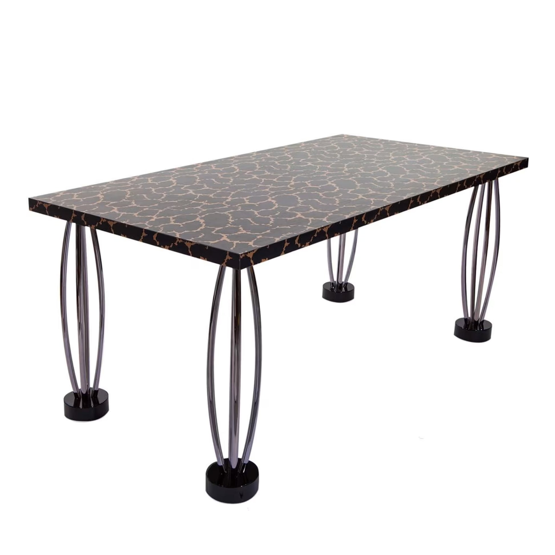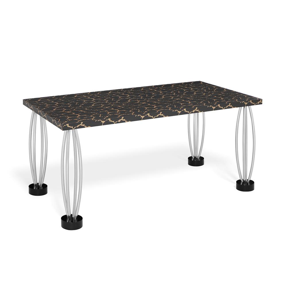 Table in laminated composite board, chrome-plated steel, enameled aluminum.