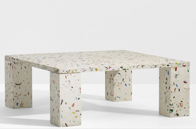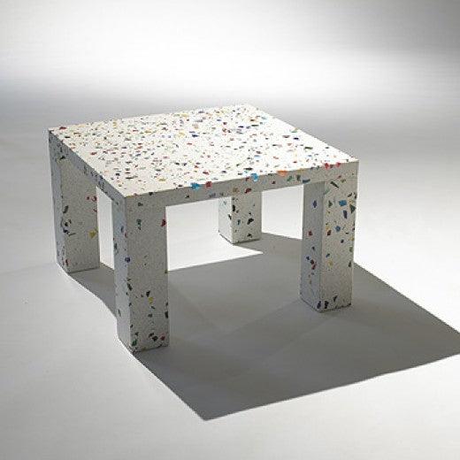 Square service table made with the traditional technique of "Star Piece" terrazzo. in concrete conglomerate and colored glass.