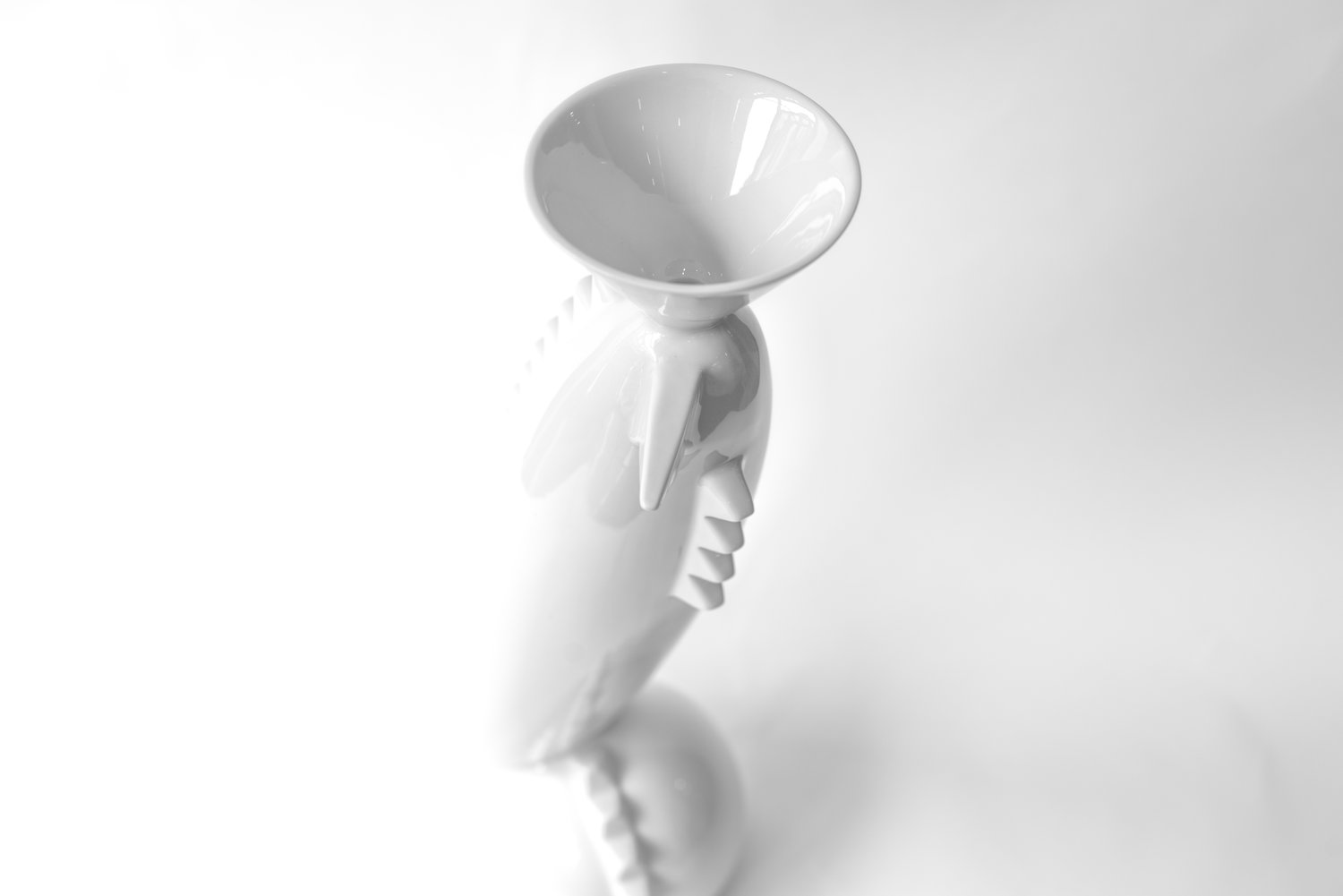 Hand-turned and hand-shaped white porcelain vase with kiln-sublimated decorative decals.